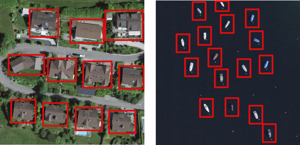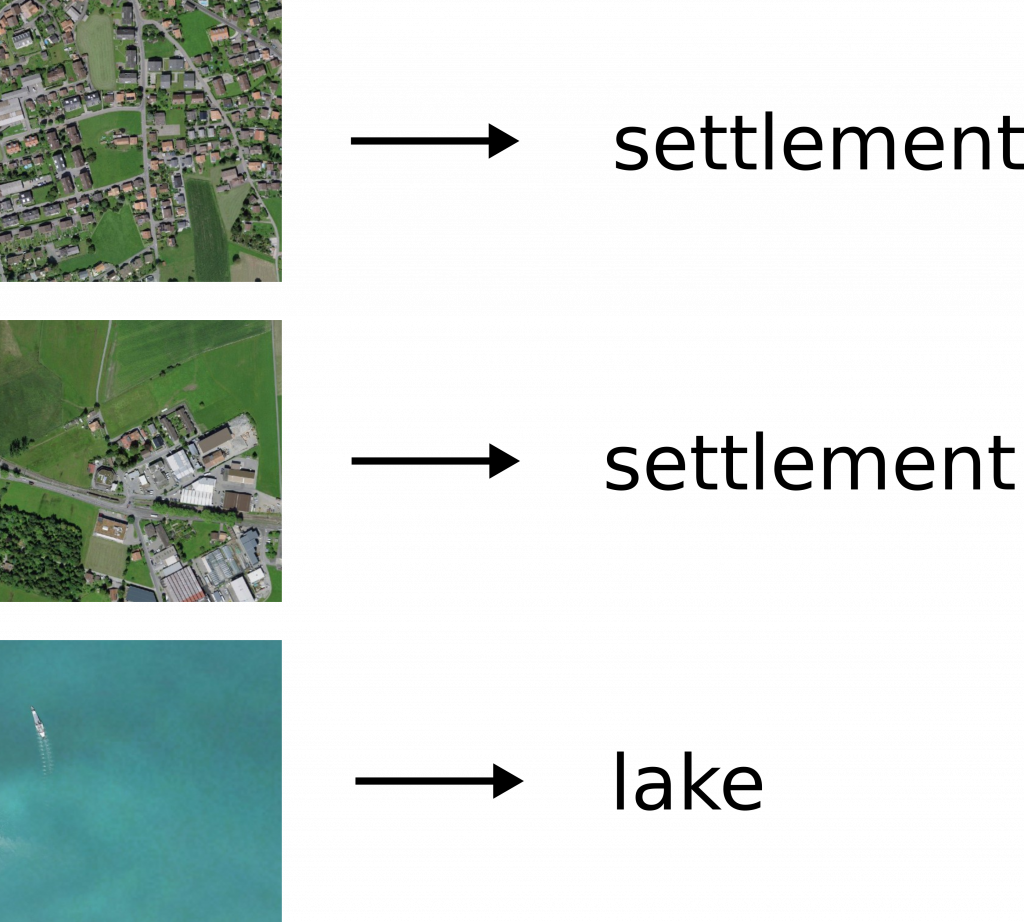 First, one of the most straightforward computer vision problems is Image Classification, the very task in which AlexNet originally excelled. In Image Classification, the algorithm’s challenge is to determine the single object depicted in an image. Classical examples of these objects include animals like cats or dogs, but virtually any object can be identified as long as it is unambiguously visible in the input image. For instance, when provided with earth observation data, a single image can be categorized based on the depicted land cover, such as a lakes or a settlements (see Figure 1). Typical architectures for Image Classification are AlexNet, VGGNet or ResNet.