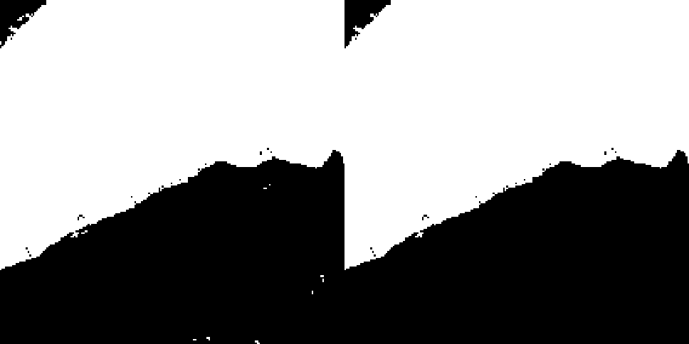 Figure 2: The original segmentation image (left) has been processed with Connected Components Analysis (CCA) to remove noise (right).